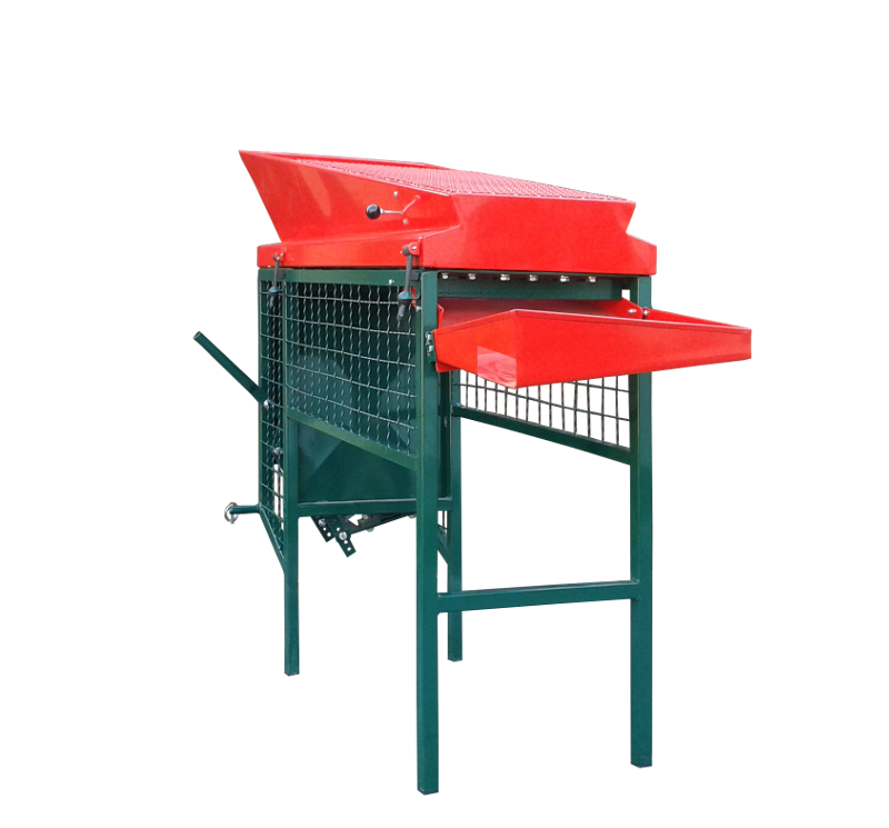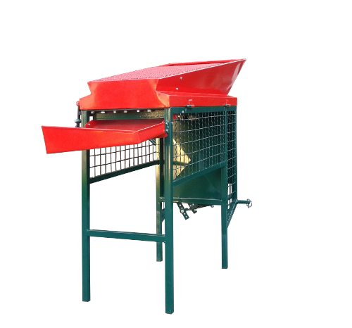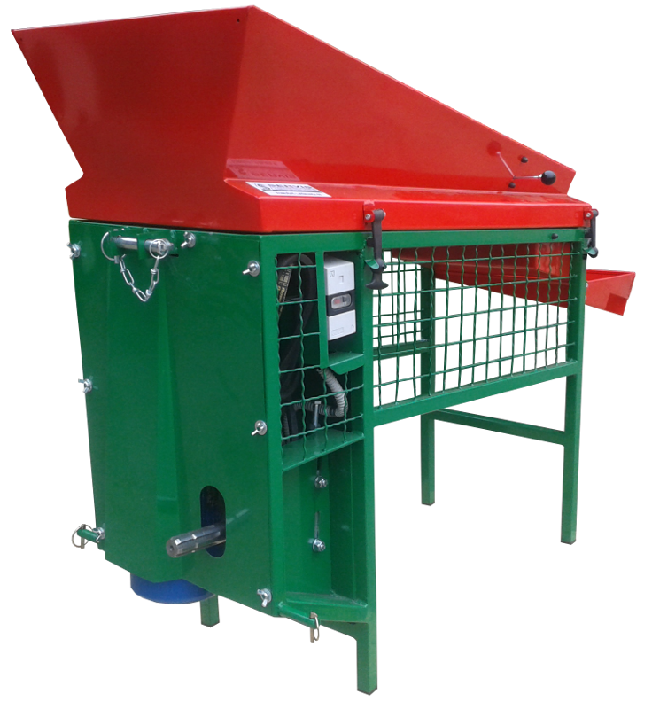Komušač lješnjaka namijenjen je odvajanju ljuske (komušine) od ploda nakon branja a prije drobljenja. Očišćen plod izlazi naprijed a komušina se izbacuje ispod stroja. Lješnjaci se mogu komušati kad odstoje 2-3 tjedna da povenu i lagano se prosuše. Ne preporučamo komušanje odmah u voćnjeku pri berbi! Pogon je na kardan traktora. Postoji mogućnost izrade s pogonom na elektromotor (posebna narudžba).