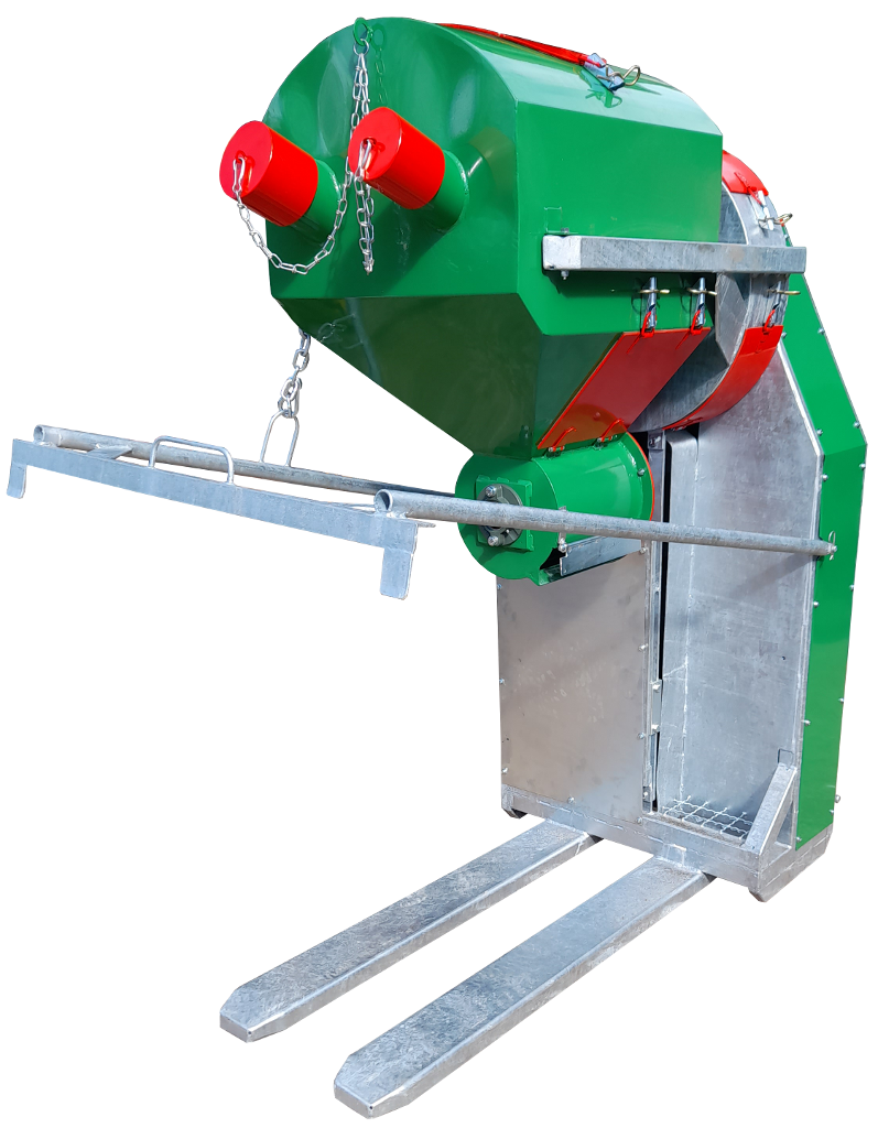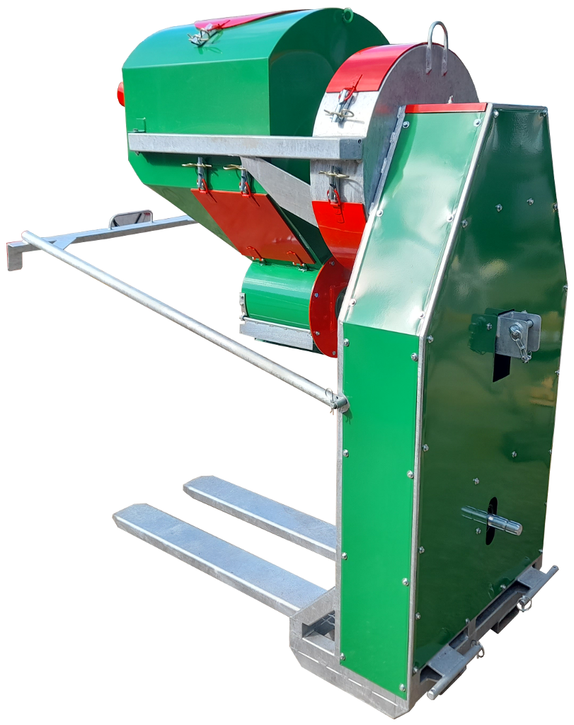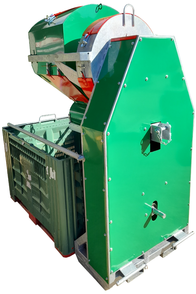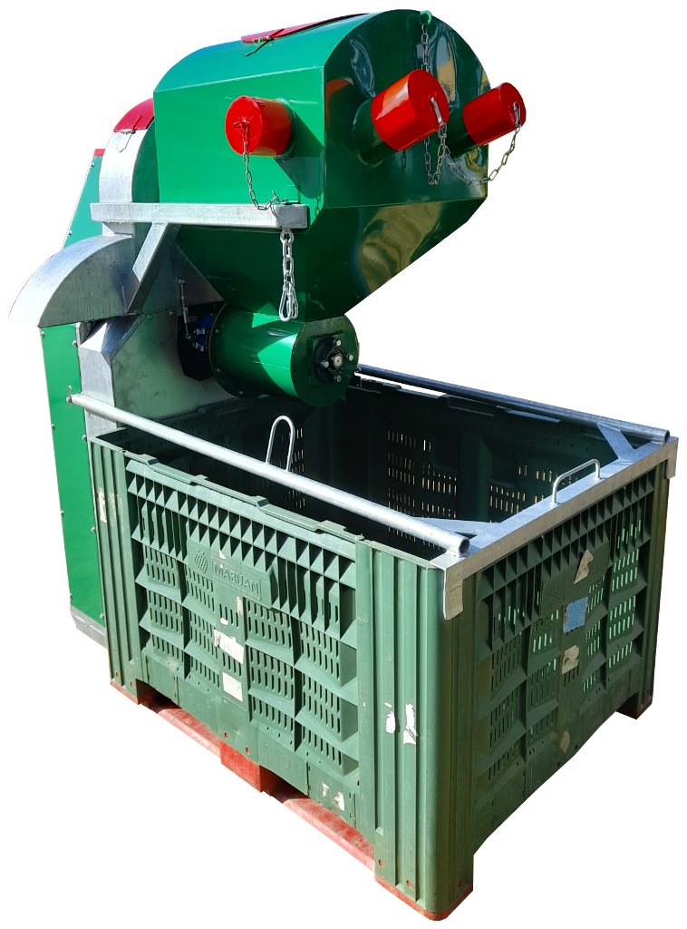 Usisavač lješnjaka pogoni se kardanom traktora. Na usisavač se mogu priključiti 2 usisna crijeva, jedno promjera 120mm i drugo promjera 100mm. Ako se koriste oba crijeva za usisavanje tada se na ulaz promjera 120mm stavlja adapter za crijevo promjera 100mm te se usisava s 2 crijeva od 100mm ili pojedinačno s jednim od 120mm ili s jednim od 100mm. Usisavač ne odvaja ljusku (komušinu) od ploda već plod na izlaz za plod izlazi neočišćeni. Na izlaz za plod stavlja se paletna kutija koje se podiže zajedno s usisavačm putem hidraulike traktora. Na odzračni izlaz izlazi prašina, sitno lišće i sve što je jako lagano. Težina usisavača je oko 270kg te se može priključiti na hidrauliku manjeg traktora.